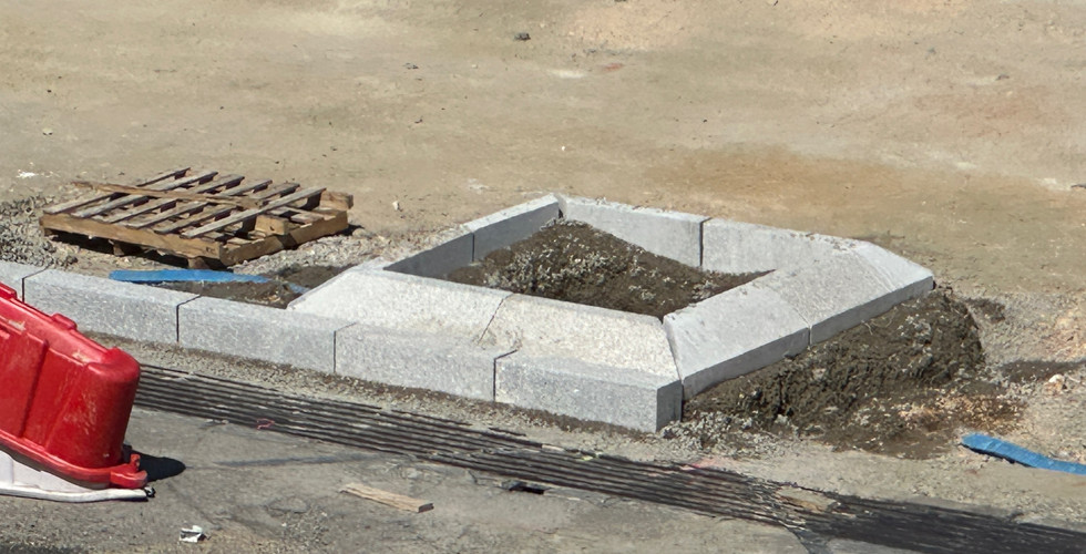 • Les emplacements et les bordures pour les palmiers ont été installés sur la future place cœur de ville.